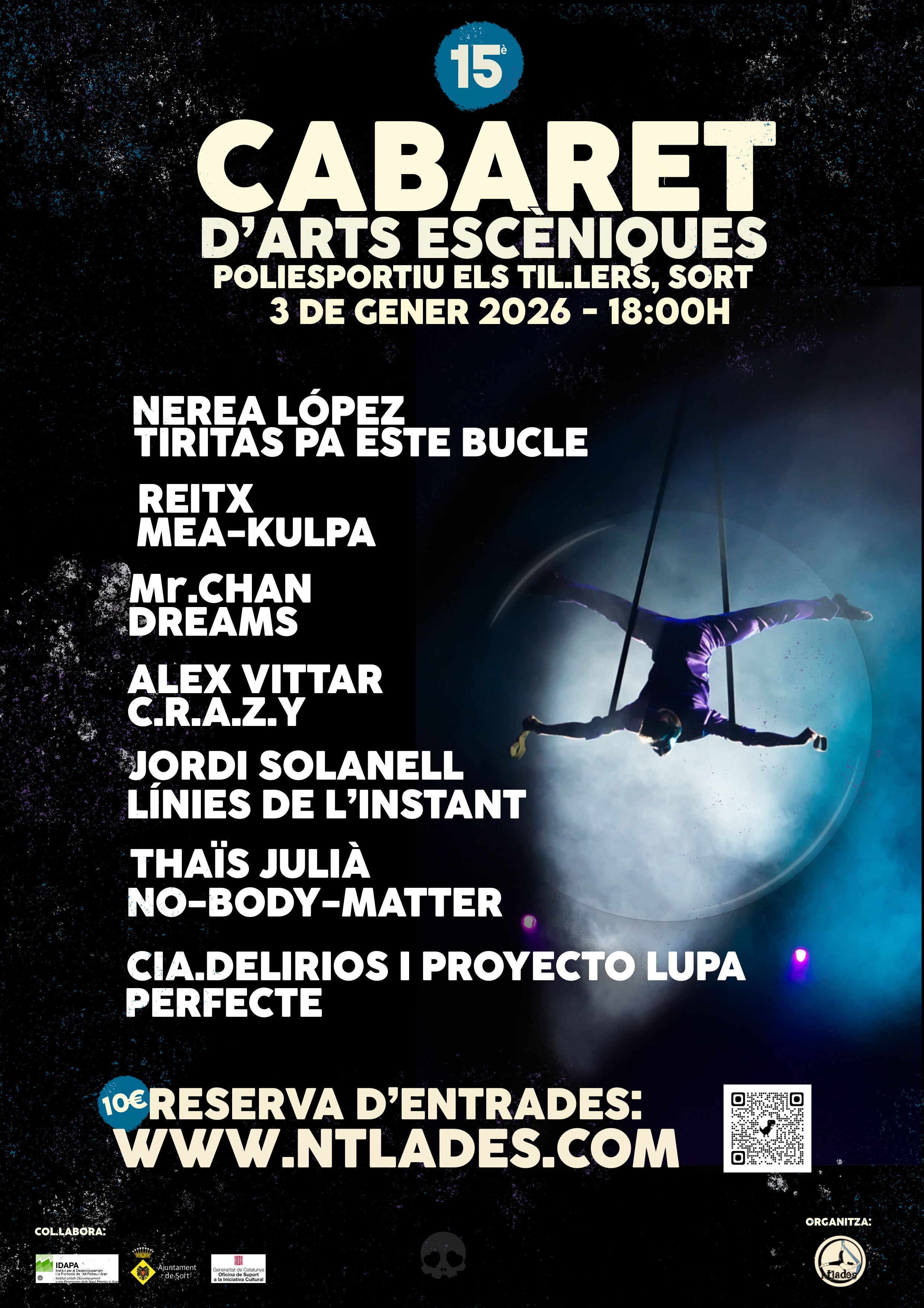 El pròxim 3 de gener a Sort, al poliesportiu els Til·lers, podreu venir a gaudir dels i les artistes que vindran al Cabaret per apropar-nos el circ, el teatre, tallers i moltes coses més!! Anota la data a l'agenda i recorda que per entrar a gaudir dels espectacles, has de comprar entrada! No et quedis sense pots comprar-la aquí mateix i si ja la tens, recorda venir 30 minuts abans que comenci l'espectacle! Ens veiem al Cabaret!!